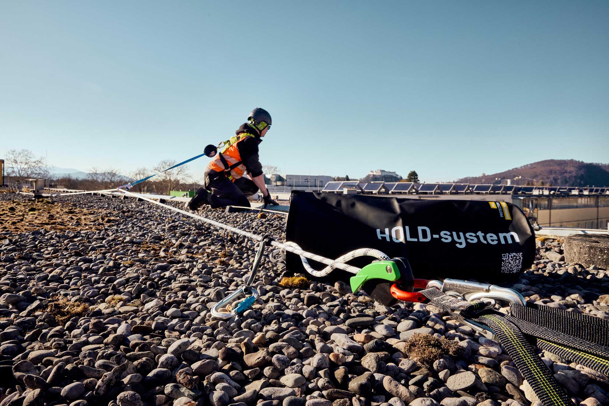 Die Lifeline HOLD-system bietet höchste Sicherheit durch die professionelle Nutzung persönlicher Schutzausrüstung gegen Absturz (PSAgA). Die Anschlageinrichtung ermöglicht einfache Anwendung und schnelle Montage, wodurch Zeit und Mitarbeiterkapazität eingespart werden. Zusätzlich wird durch die Absturzsicherung HOLD-system die Produktivität gesteigert. Die Anschlageinrichtung, die zur PSAgA gehört, ist innerhalb zwei Minuten einsatzbereit, wodurch Kosten und Zeit eingespart werden.